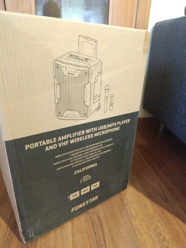 Ya disponemos de otro amplificador igual comprado en otro sitio hace años, lo hemos cogido de nuevo, ya que necesitábamos otro, y ya que el otro ha dado muy buen resultado, y aquí lo encontramos a MUY buen precio, pues aprovechamos. la entrega ha sido en solo un día, a pesar de que marcaba que se entregaría casi una semana después. Así que genial todo., Calidad de sonido excelente, Conectividad Bluetooth, Función de radio FM, Micrófono incorporado, Función de radio FM, Función karaoke, Diseño elegante, Batería de larga duración, Portátil y ligero